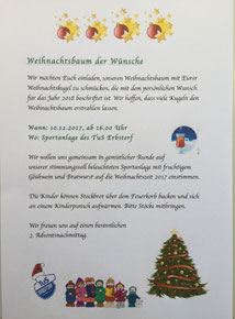Am 2. Advent ist es wieder soweit. Lasst unseren Weihnachtsbaum mit eurer Wunschkugel erstrahlen. Wir laden euch dazu herzlich ein und freuen uns schon jetzt darauf, ein paar schöne Stunden in