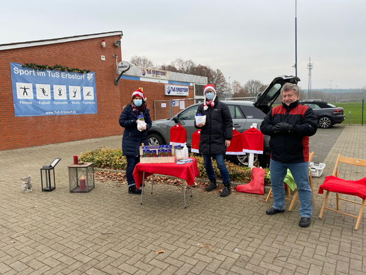 250 mit Äpfeln, Clementinen und Nüssen gefüllte, selbstbemalte Nikolaustüten haben wir am Nikolaustag am Rathausplatz in Adendorf und am Vereinsheim an Spaziergänger, Jogger und Radfahrer verteilt. Ob klein, ob groß, jeder hat eine Tüte bekommen. Es hat allen Beteiligten sehr viel Spaß gemacht, weil wir mit dieser Aktion den Menschen eine kleine Freude machen konnten und viele positive Rückmeldungen erhalten haben..