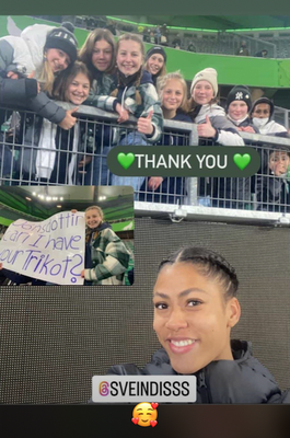 Leider hat es mit dem Trikotwunsch nicht ganz geklappt, aber ein Selfie konnte mit Sveindis Jane Jonsdottir gemacht werden!