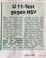 Am 25.04. spielt das U11-Auswahlteam des NFV Kreises Heide-Wendland gegen ein Perspektivteam des HSV. Das Spiel findet beim SV Ilmenau in Melbeck statt und beginnt um 17.30 Uhr.