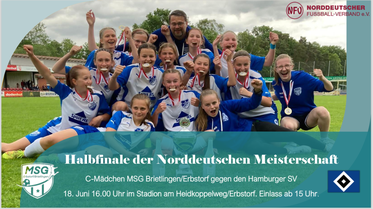 Fußball Jugend · 13. Juni 2022 Halbfinale um die Norddeutsche Meisterschaft am 18.06. Unsere C-Mädchen MSG Brietlingen/Erbstorf spielen gegen den Hamburger SV !!!! Zeit: 18. Juni 16.00 Uhr Ort: Stadion am Heidkoppelweg/Erbstorf. Einlass ab 15 Uhr. Weitere Infos im Laufe der Woche hier. tagPlaceholderTags:
