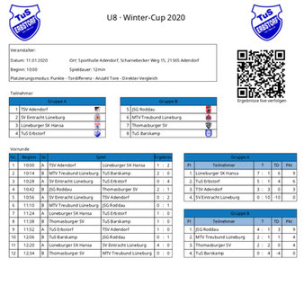 Am Samstagvormittag gab es packende Spiele der kleinsten Kicker in der Altersklasse U8. Im Endspiel standen sich dann der gastgebende TuS Erbstorf und der LSK Hansa gegenüber. Am Ende musste der Turniersieg im "Elfmeterschießen" ermittelt werden und ging dann ganz knapp an den TuS. Ein packender Abschluss für die Kleinen und auch für alle Zuschauer in der voll besetzten Adendorfer Sporthalle.
