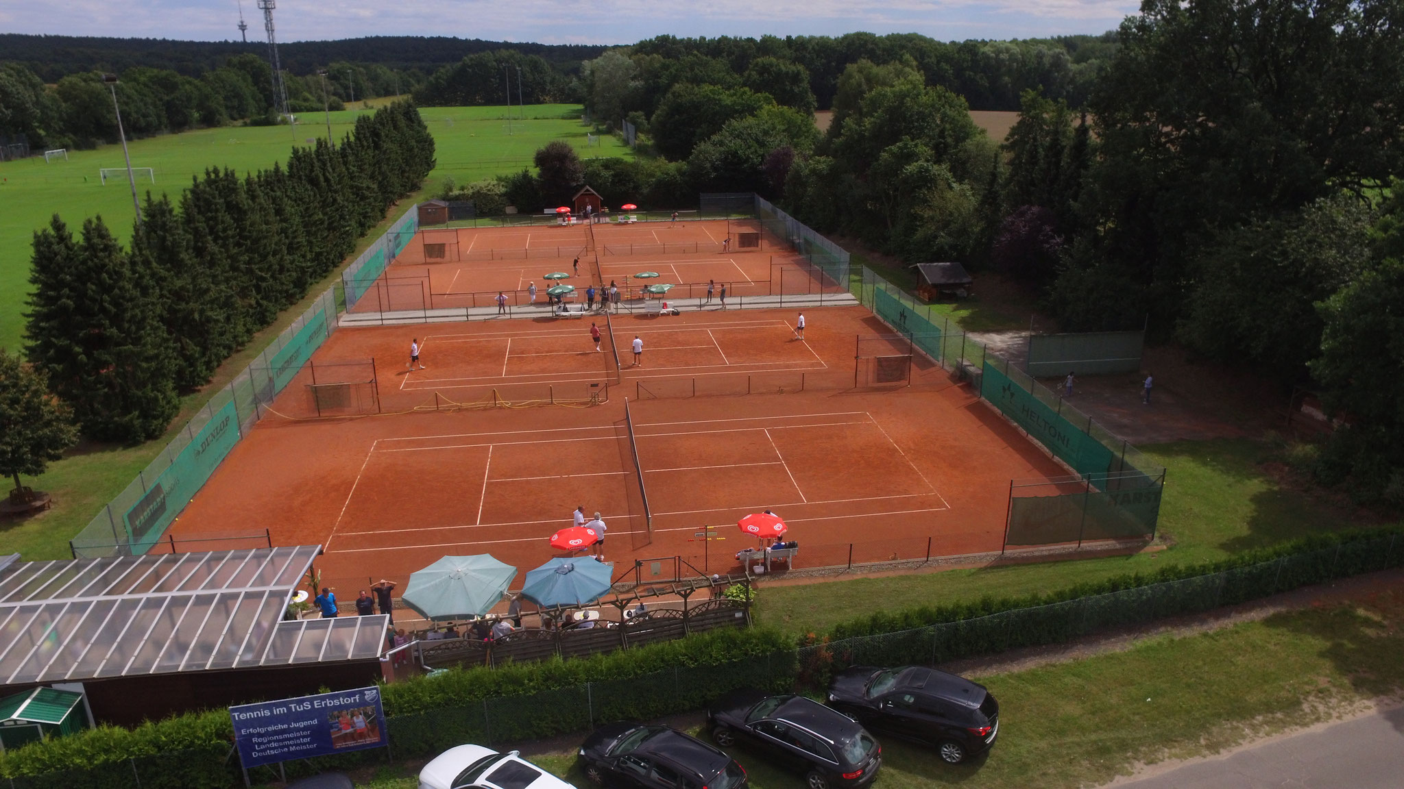 Für den Spiel- und Trainingsbetrieb stehen vier Rotsandplätze zur Verfügung.