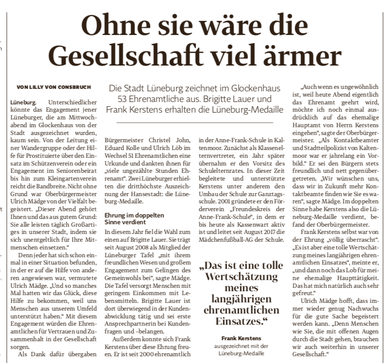 Am 14.12.2017 wurde Frank Riecke von der Hansestadt Lüneburg für sein ehrenamtliches engagement für den TuS Erbstorf ausgezeichnet. Hier die Laudation im Wortlaut: