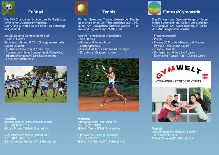 Hier kannst Du Dir einen Überblick über unsere Sportangebote verschaffen. Nähere Informationen zu den Angeboten findest Du unter den jeweiligen Sportseiten.