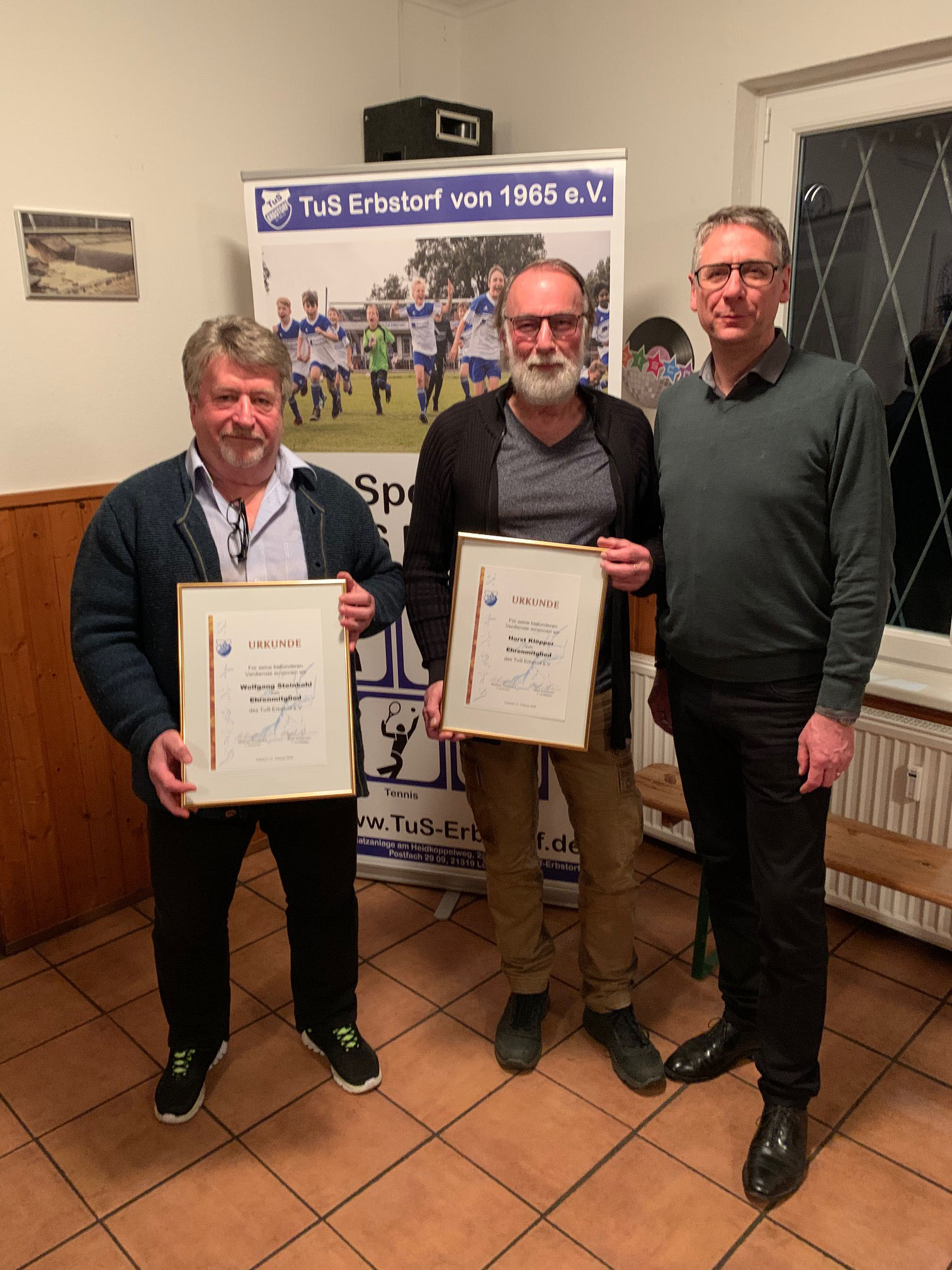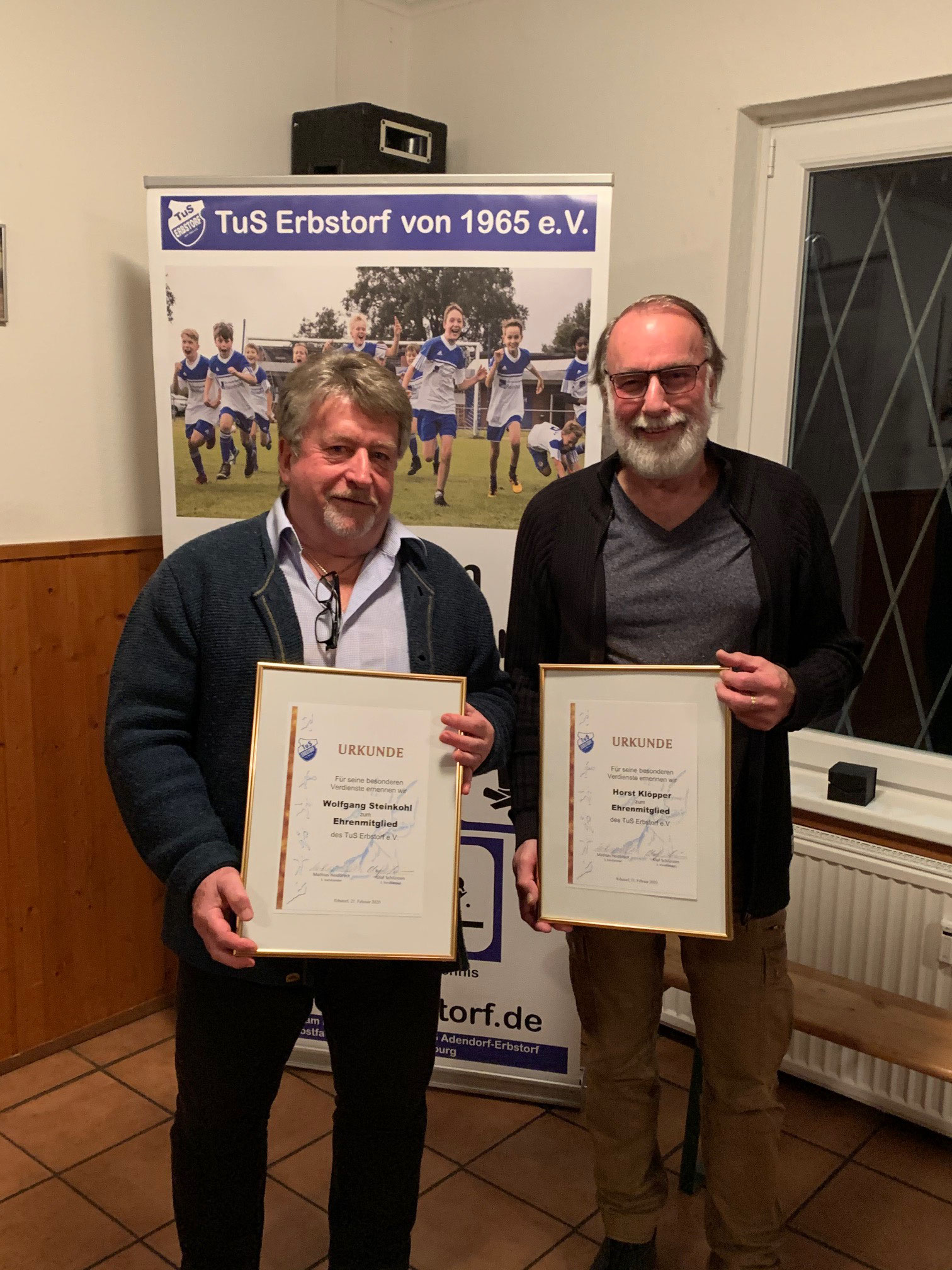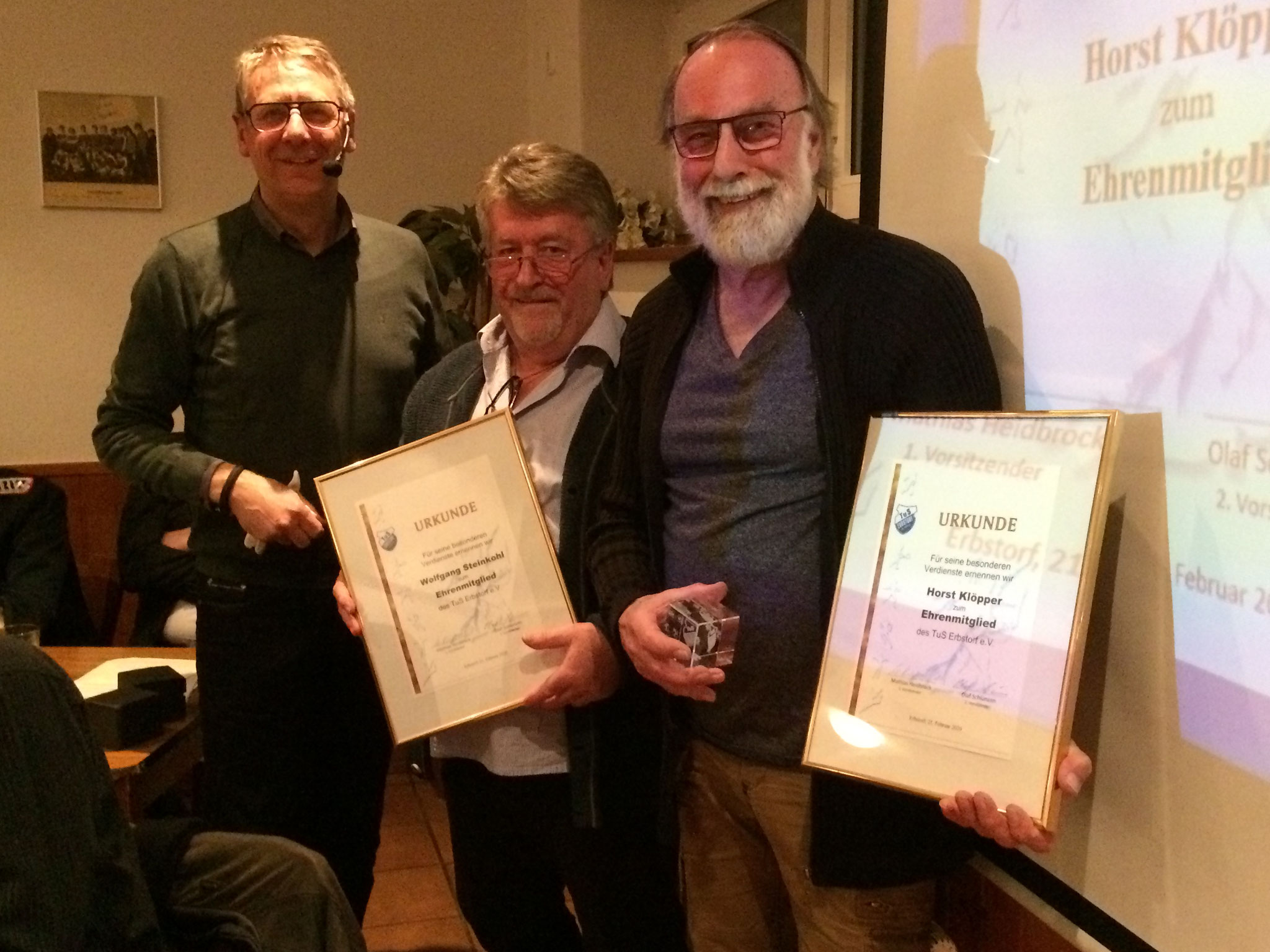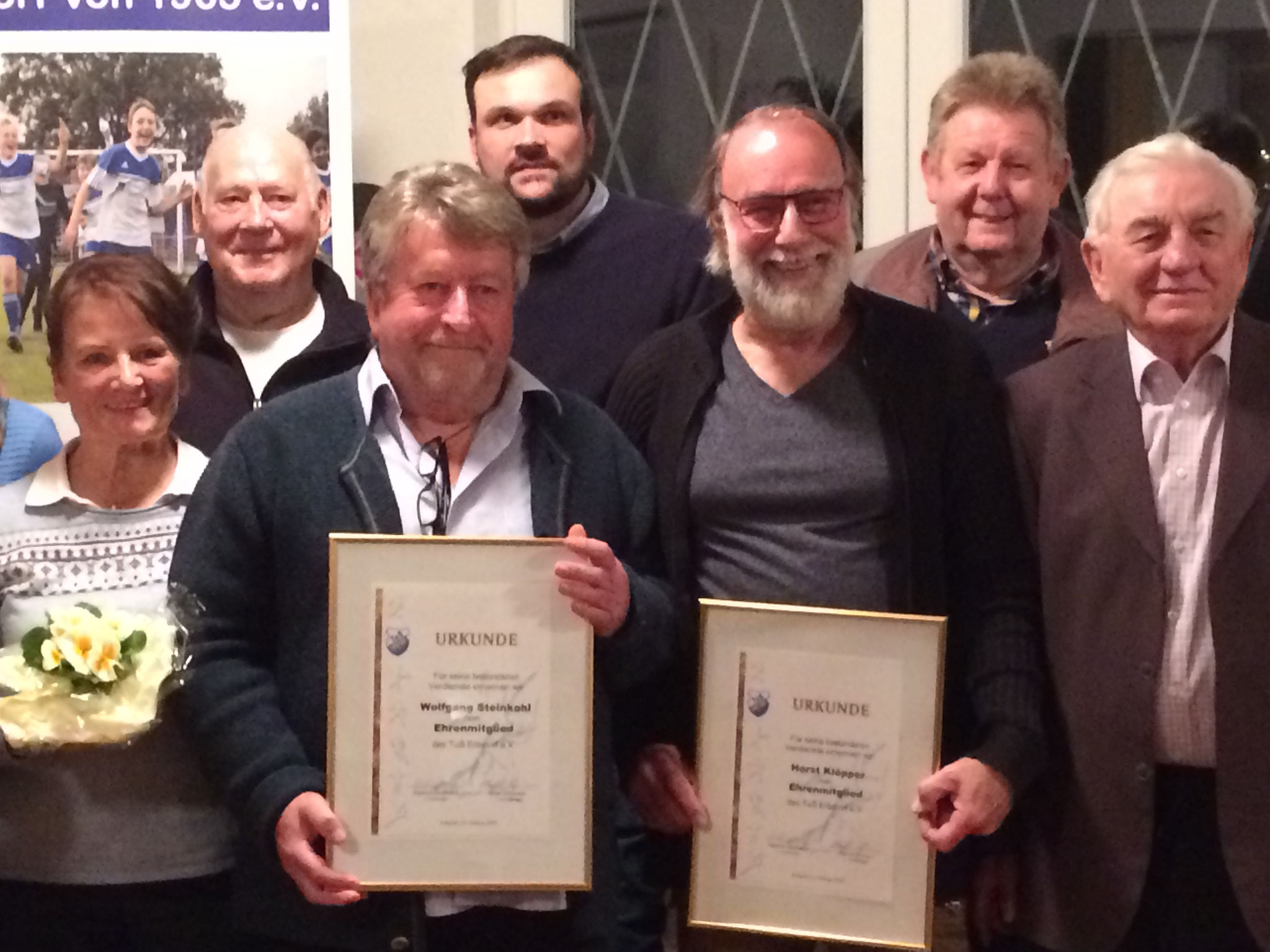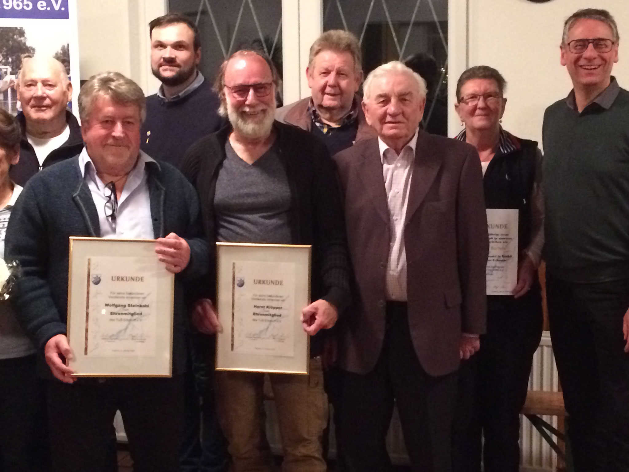 Auf der mit 62 Mitgliedern sehr gut besuchten Mitgliederversammlung wurden Horst Klöpper und Wolfgang Steinkohl einstimmig und mit stürmischem Applaus zu neuen Ehrenmitgliedern gewählt. Horst und Wolfgang engagieren sich seit Jahren ehrenamtlich für unseren Verein.